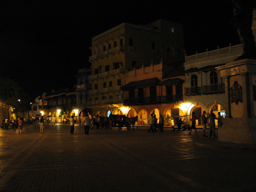 Plaza de los Coches at night. It was formerly used as a slave market.