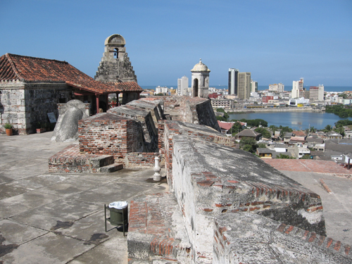 View of the centro historico from Castillo de San Felipe de Barajas, the fort at Cartagena. It looks a bit like a (more) modern Mayan ruin and was never breached. |